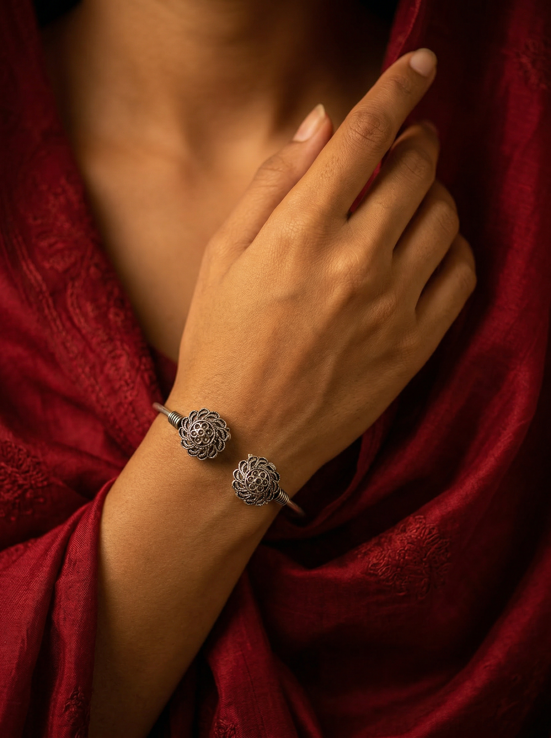 The Oxidized Bangle: Floral Filigree Cuff
