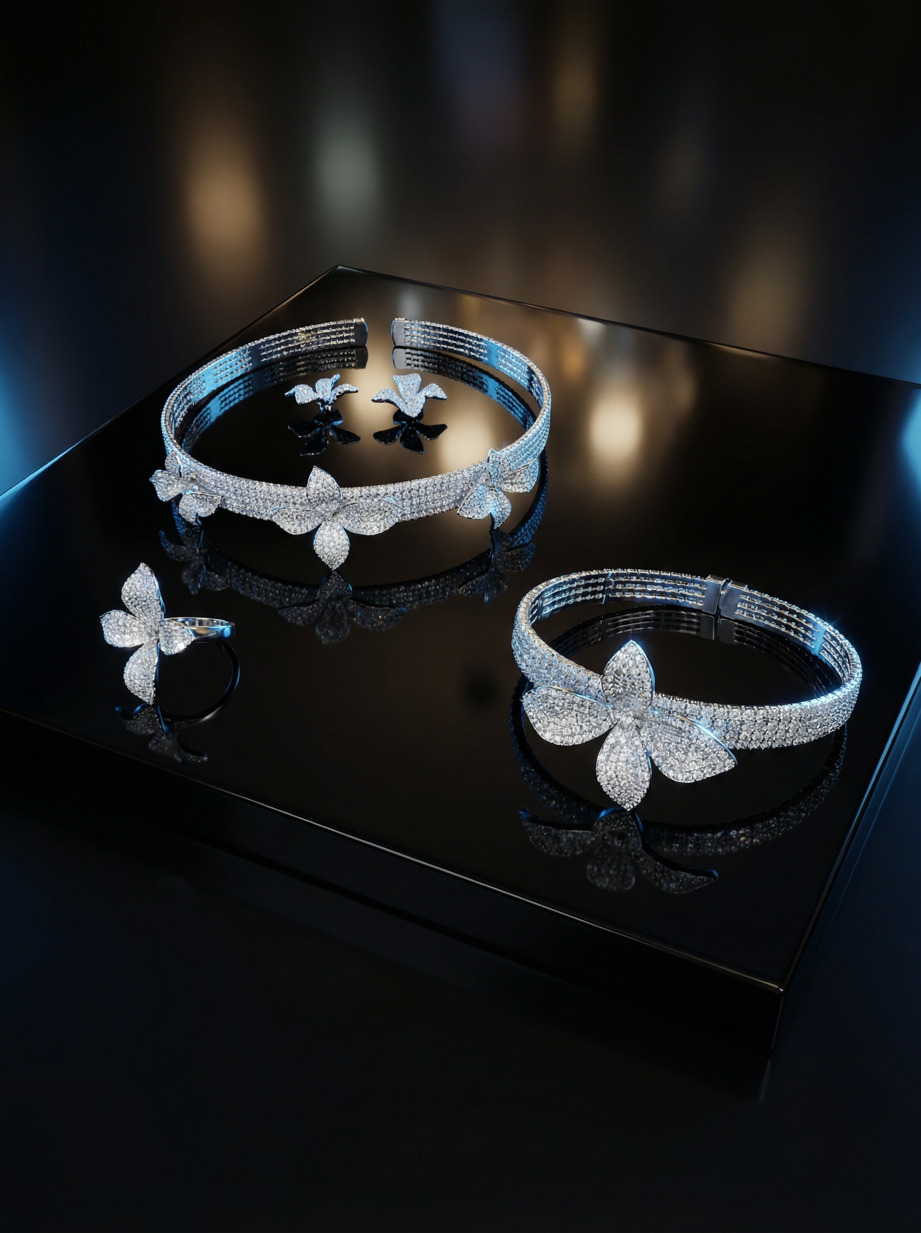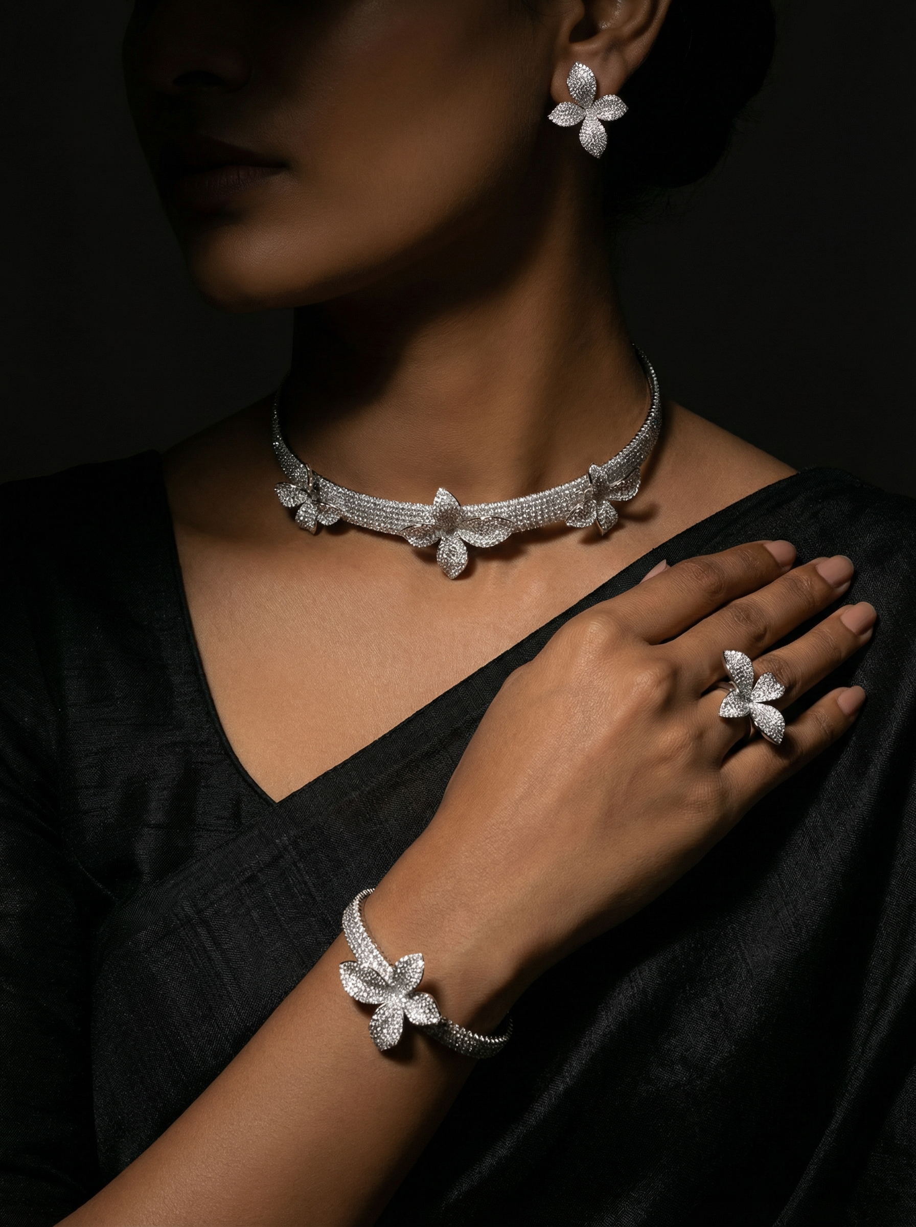 he Petal Choker | Radiant Silver Floral Statement Set