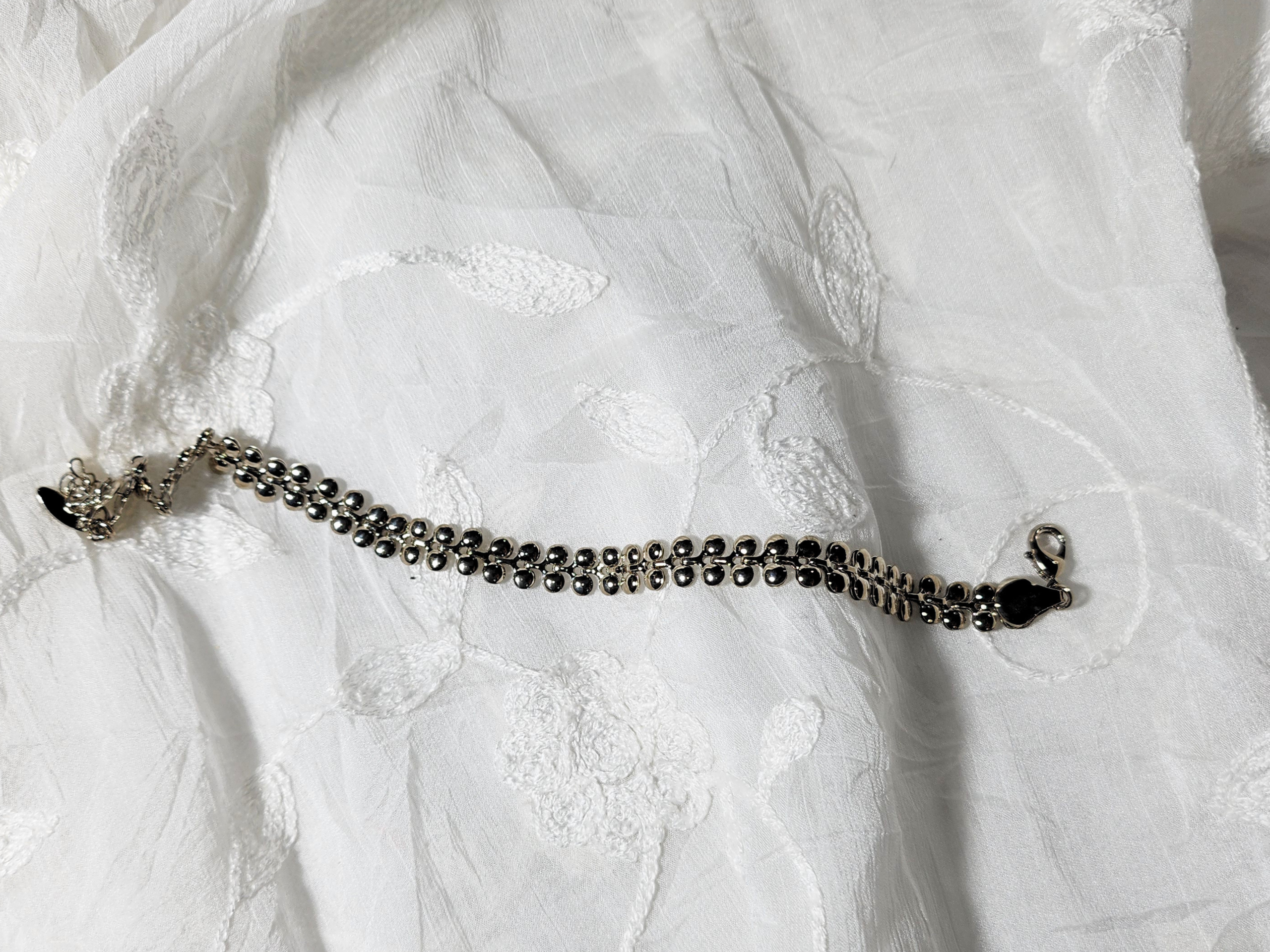 Embrace a vintage, artisanal aesthetic with the Silver Vibe anklet. Crafted with a stunning oxidized silver finish, this piece features a bold, textured link design that exudes old-world charm. Its darkened patina highlights the intricate metalwork, making it a perfect standout accessory for traditional ensembles or fusion street style.